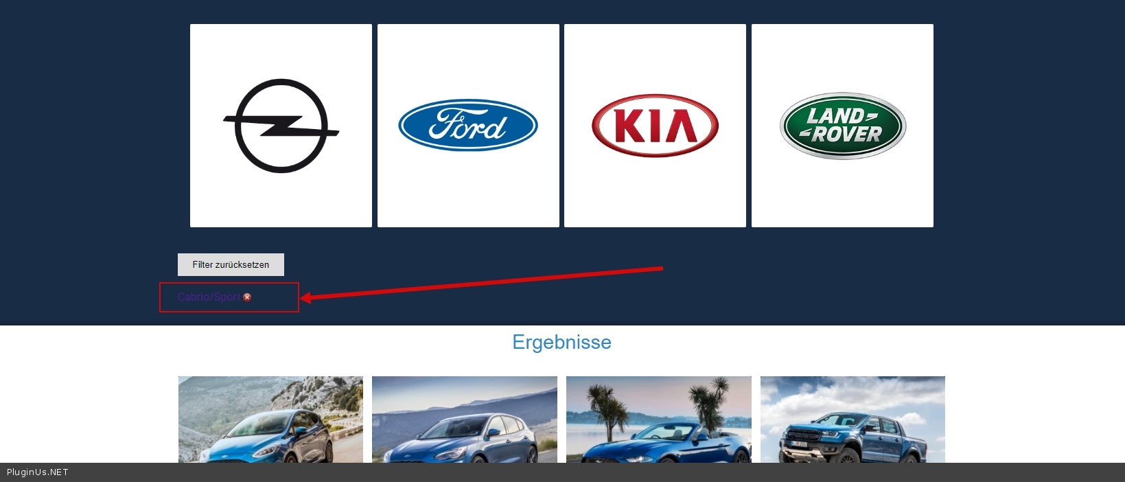 Target to results when a filter is selected