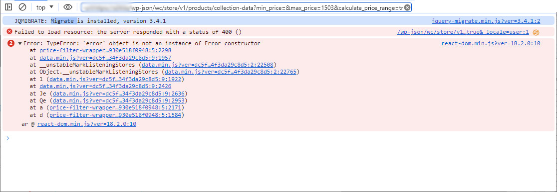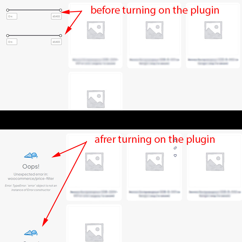 When you enable the plugin, errors appear on the product page in blocks/widgets with woocommerce search elements, instead of search elements, the error text is displayed with a picture of a fallen ice cream) - “Oops! There was an error loading the content. Error: TypeError: `error` object is not an instance of Error constructor"