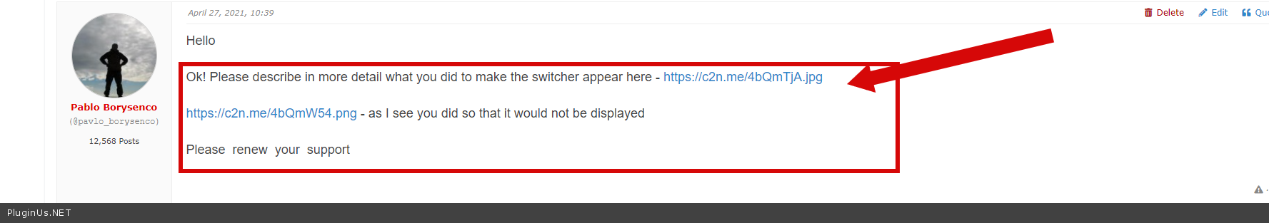 The support doesn work on Saturdays and Sundays, so some Friday requests can be answered on Monday. If you have problems with registration ask help on contact us page pleaseIf you not got email within 24~36 business hours, firstly check your spam box, and if no any email from the support there - back to the forum and read answer here. DO NOT ANSWER ON EMAILS [noreply@pluginus.net] FROM THE FORUM!! Emails are just for your info, all answers should be published only here.