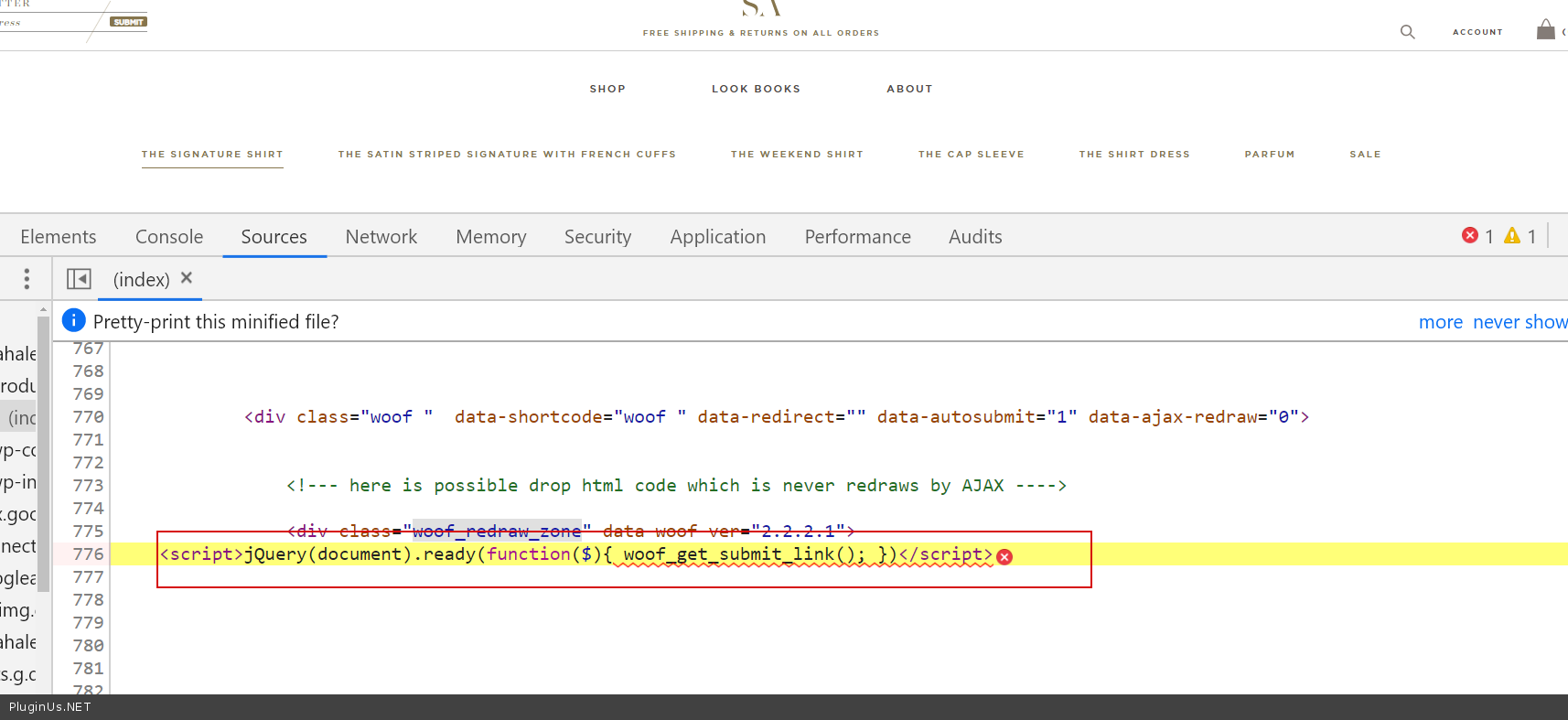Our client's website seems to be broke. On their categories, the pages just stop at a certain point and no longer show the rest of their products or the rest of the page (footer included). The error we are seeing is Uncaught ReferenceError: woof_get_submit_link is not defined at HTMLDocument.<anonymous>
