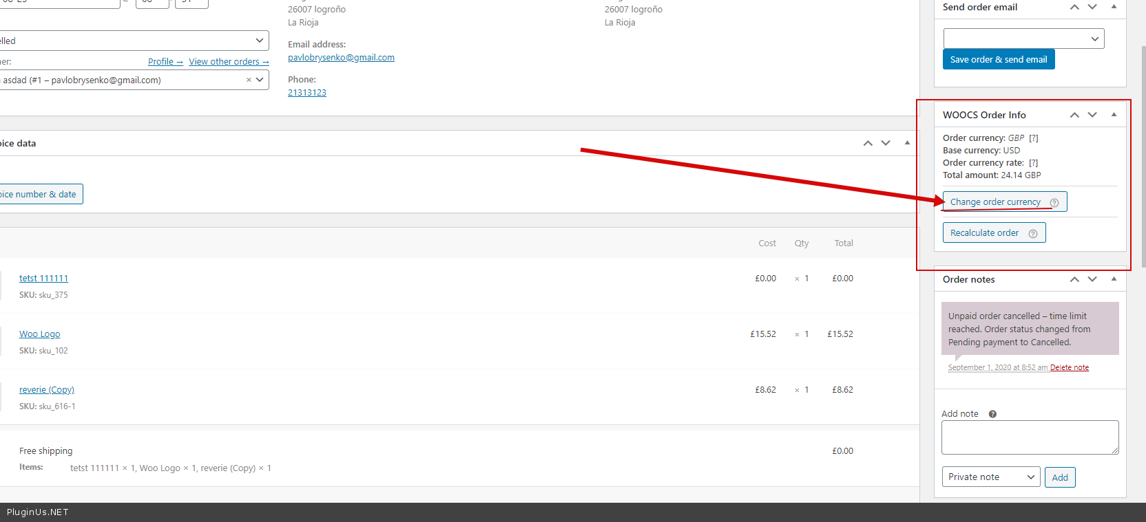 Also, on our site the base currency is GBP and the above given sample was an order placed by a customer in USD currency. And because of which _woocs_order_rate should have some other value than 1.