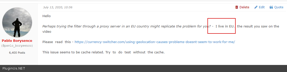 And we cannot do the 'enabling caching support' option in Woocommerce since that's pretty much the same thing because of the string it adds to the url. It is frankly a dumb workaround from Woocommerce to try to solve something which can be solved much better. Ecommerce stores should not have it enabled because of the mess it causes to urls, SEO etc. In any case, the option does not need to be enabled for the currency switcher to work properly so it shouldn't need to be enabled for the filter either. Instead of this option, we have the Woocommerce MaxMind integration set up to provide correct geolocating as per the following and it works: