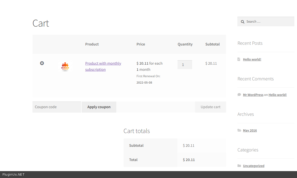 - Product B, is the same as Product A, but I have added a Signup Fee. This case fails. https://store.conectado.me/?product=product-with-monthly-subscription-and-setup-fee
