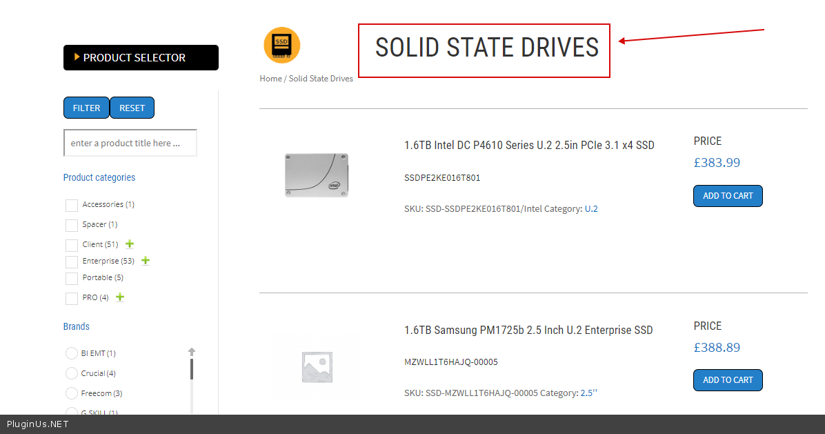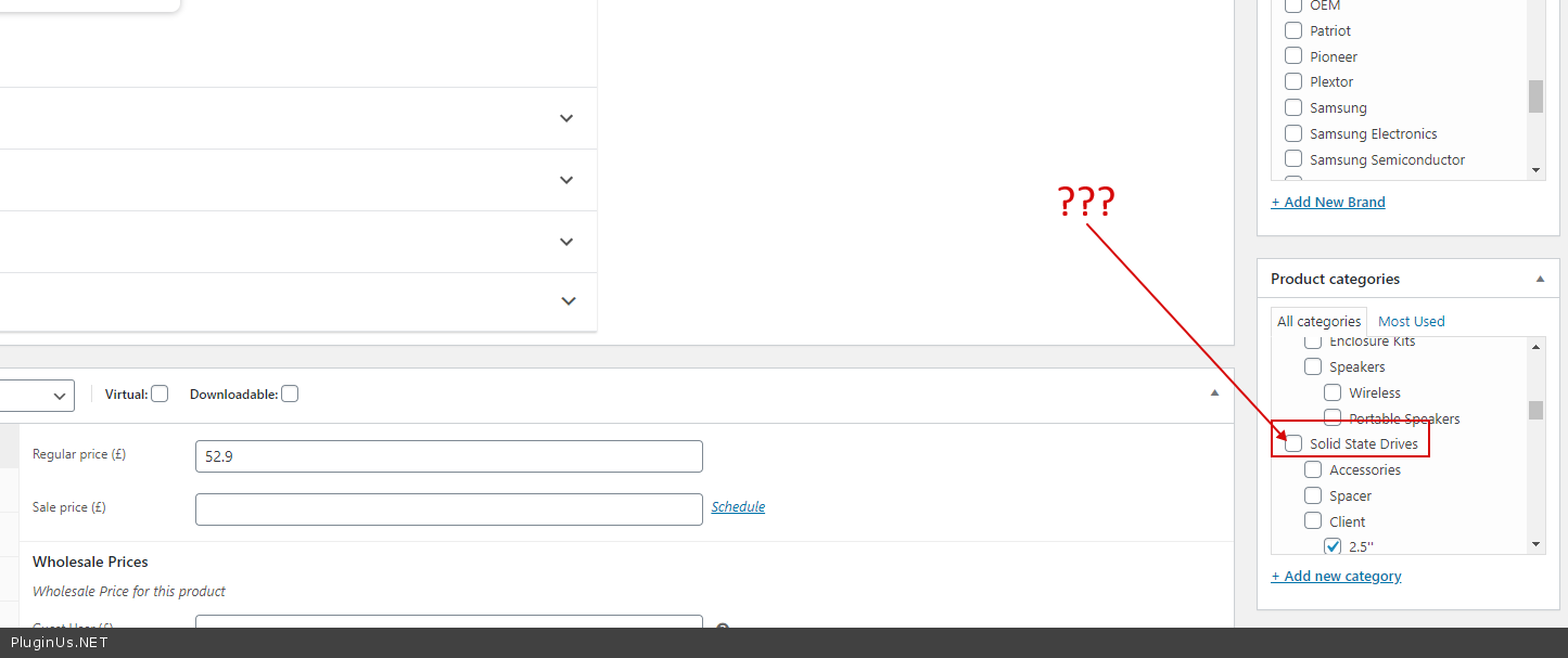 - Taking the example of the product you used in the above png's (SKU=CT500MX500SSD1), the WooCom Product Category hierarchy is 'Solid State Drives > Client > 2.5'' view screen grab here. .