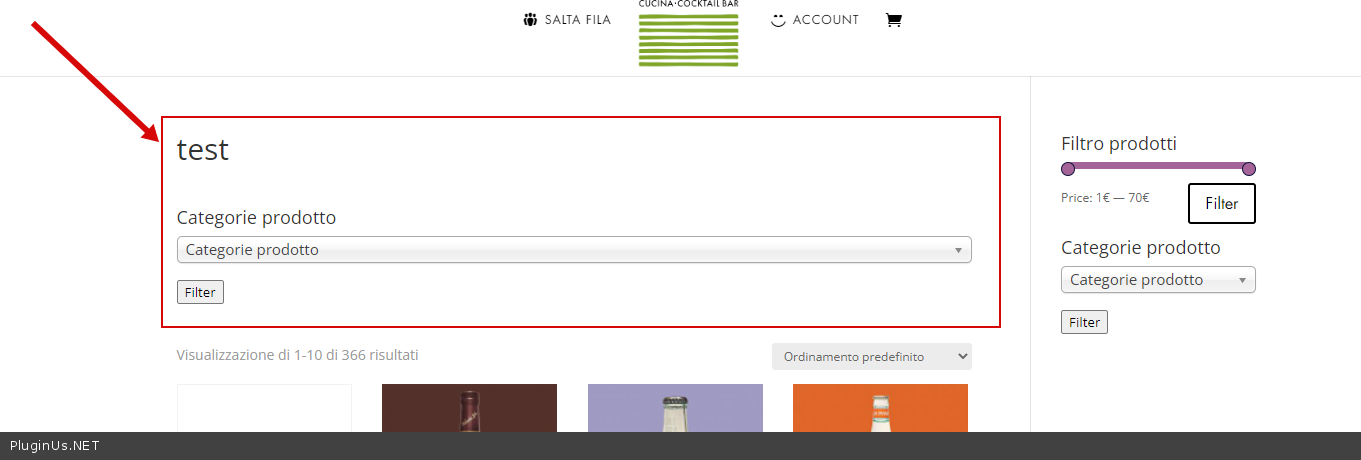 Ma ho il seguente problema:se carico il codice su una pagina Nuova (senza usare la modalità Divi) il codice funziona https://treebar.it/test/?swoof=1&paged=1