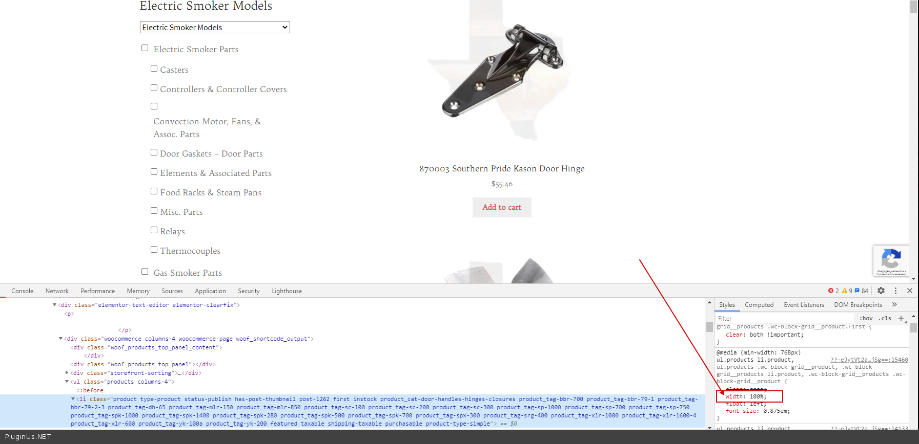 You have a very strange site setup - https://southernprideoftexas.com/product-category/gas-smoker-parts/convection-system/convection-motors/ - this link should show the convection motors using a woocommerce template, but for some reason here is a shortcode [woof_products] - it is not right