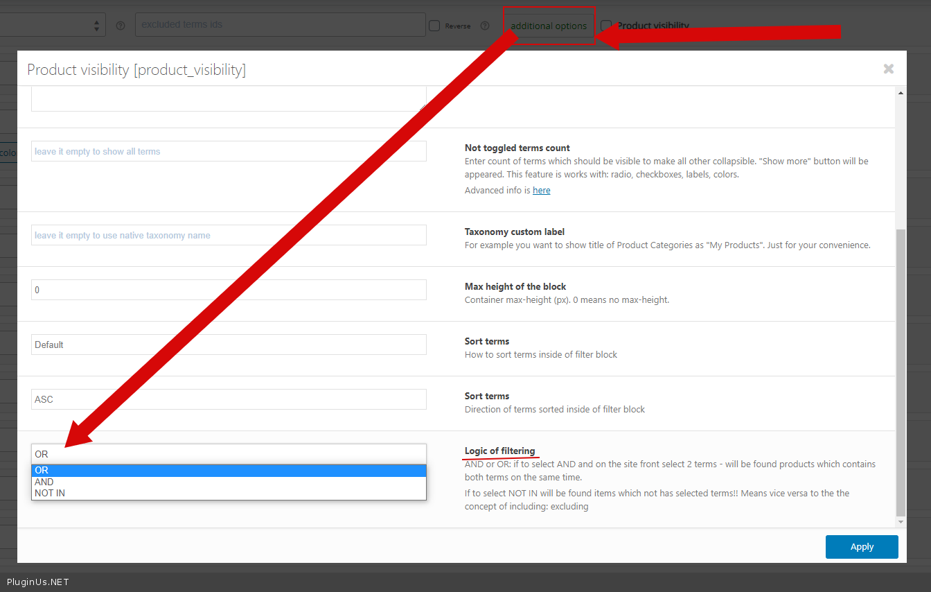 'product_cat' => 'OR',