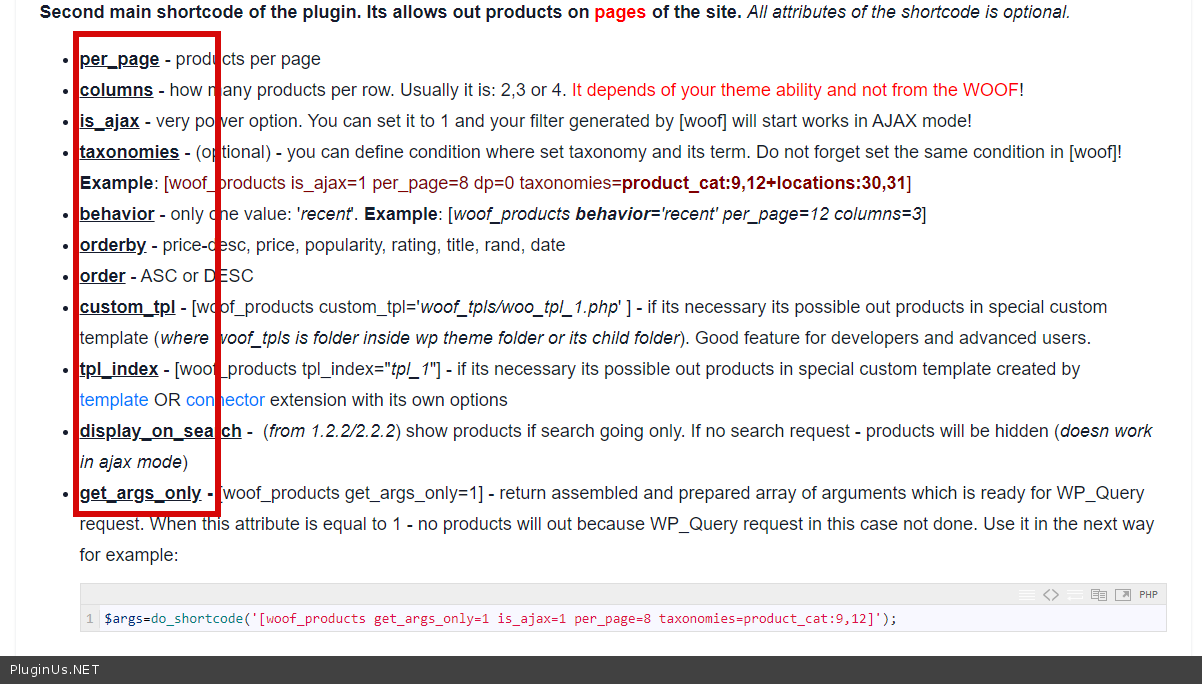 I have a Woof filter on one side called with: [woof is_ajax=1 tax_exclude=product_cat:83]