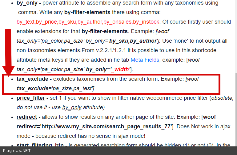 there isn't a way to exclude a taxonomy from the product - https://c2n.me/4bYp0aT.png - Please read docs - https://products-filter.com/shortcode/woof/ - This works for taxonomies. This does not work for individual taxonomy terms. In