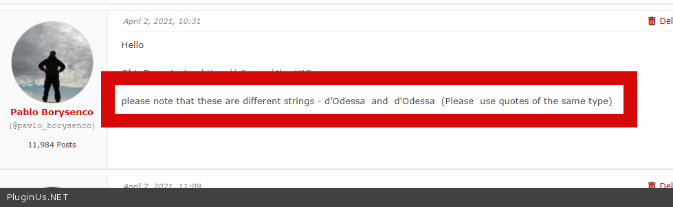 please note that these are different strings - d’Odessa and d'Odessa (Please use quotes of the same type)